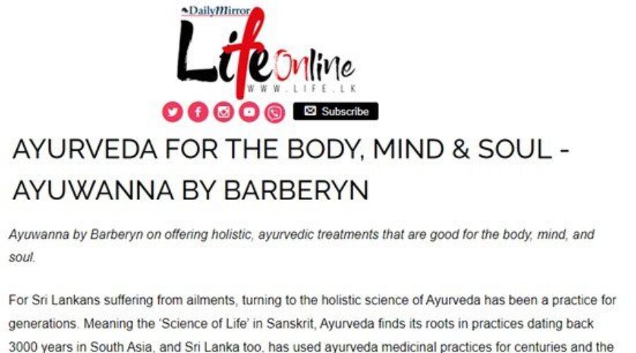 Daily Mirror: LifeOnline – Ayurveda for the body, mind & soul, Ayuwanna by Barberyn CLICK HERE TO VIEW THE ARTICLE