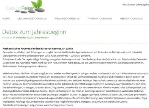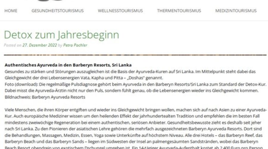 GESUNDREISEN: DETOX ZUM JAHRESBEGINN AUTHENTISCHES AYURVEDA IN DEN BARBERYN RESORTS, SRI LANKA CLICK HERE TO VIEW THE ARTICLE